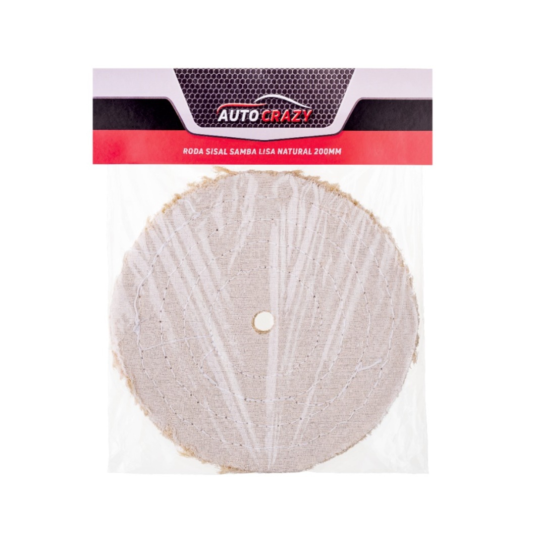 A Roda de Sisal Samba Lisa Natural da Auto Crazy é confeccionada em camadas sobrepostas de telas de sisal e tecido de algodão costurado cru ou resinado sem centro de papelão, permitindo uma extensa variedade de combinações para melhor atender as necessidades específicas de cada polimento. Indicada para o polimento de Aço inox e Ferro, metais ferrosos e não ferrosos.